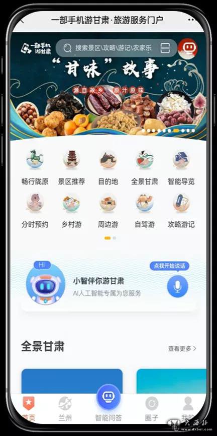 在科技赋能的视角下,“一部手机游甘肃”综合服务平台从技术赋能到共创价值再到生态共建的发展过程,标志着“文化+旅游+科技”翻开崭新的一页。以“金牌导游、贴心管家、文化导师、全能导购”为建设目标的“一部手机游甘肃”综合服务平台成功运用了数字技术,通过景区智能导游导览、语音讲解、美图和视频欣赏、VR全景体验犹如身临其境般的游览景区,使游客在进入景区前便能对景区提前进行直观的体验与感知,使游客能提前感受景区美景,激起游客游玩兴趣。平台累计服务游客1280万人次。2020年6月,甘肃文化旅游大数据中心和“一部手机游甘肃”综合服务平台被文化和旅游部评为年度文化和旅游信息化发展典型案例。