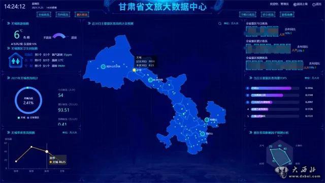 2018年3月,甘肃省启动“一部手机游甘肃”综合服务平台建设工作,作为省列重点项目,承载着在文化旅游融合发展中的重要作用。按照“互联互通、多元融合、精准分析、全面共享”的基本思路,建成了甘肃文化旅游大数据中心。纵向贯通了景区、酒店、旅行社等数据,解决了省内重点景区“看不见、呼不应、连不上、管不住”的管理难题;横向贯通了电信、移动、联通、公安、交通、铁路、民航等数据,实现了公安住宿数据、交通客流数据与旅游数据的实时共享。通过这些数据模型,基本能够掌握各省份入甘游客人次和驻留时间、各市州接待游客人次和驻留时间,以及游客性别、年龄、喜好、住宿、交通等分布情况,为全省文化旅游产业发展科学决策提供了可靠依据。
