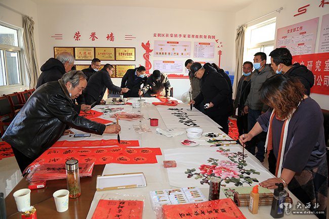 书画家现场为李家渠村民书写春联和书画作品。 贾笑云 摄