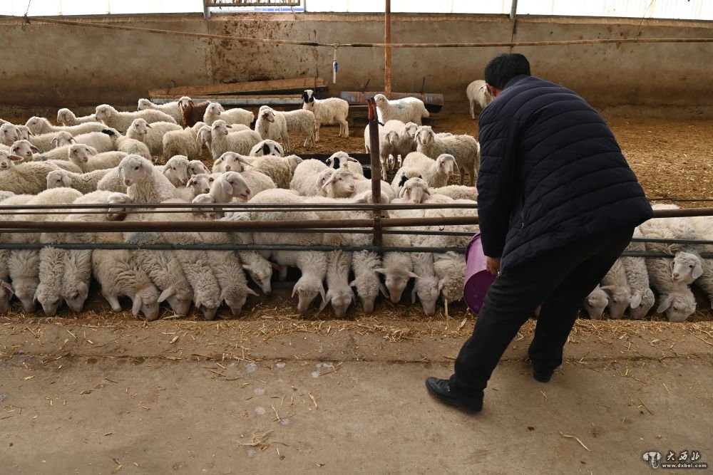 1月13日,村民在古浪县黄花滩生态移民区富民新村养殖暖棚给羊喂草。