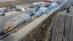 大西北网讯 1月15日14时18分,载着1960吨铝棒、铬铁矿等货物的75193次班列从中国铁路兰州局集团有限公司兰州铁路东川物流中心驶出,一路向东,最终将到达连云港。 这是兰州至连云港间首次开行铁海联运班列,也是今年以来甘肃省开出的首趟铁海联运班列。此次班列开行实行两地对开模式,千里之外的连云港也将有一列货运班列发出,最终到达兰州。