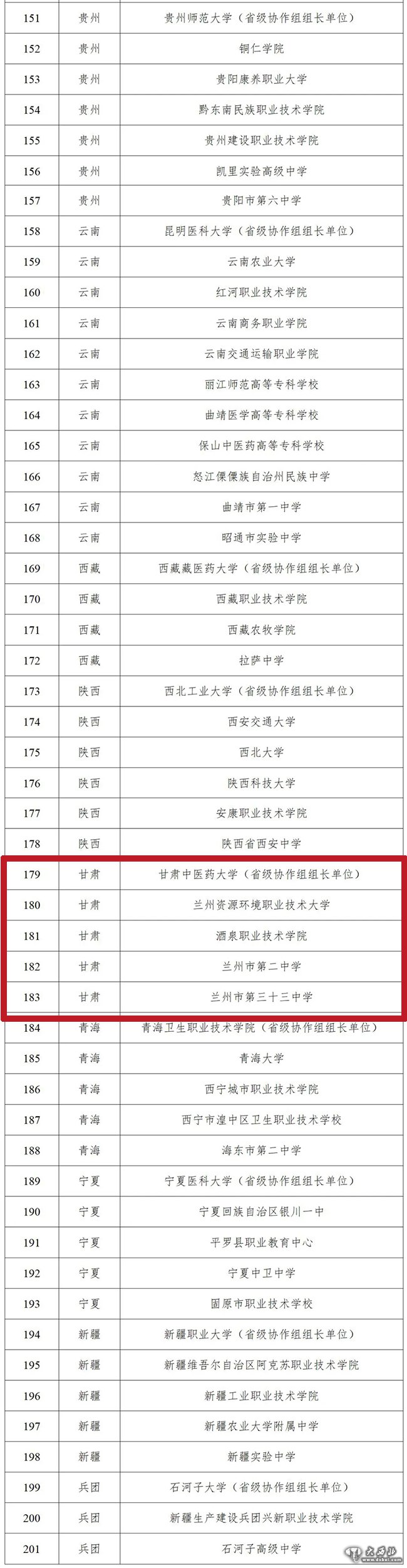 据介绍,201所学校是经自主申报、省级教育行政部门审核推荐、教育部综合认定并公示后确定的,其中高校72所、高中64所、高职53所、中职12所。