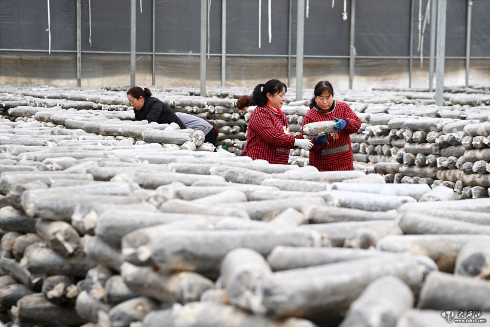 徽县一家食用菌公司的工人在采摘香菇(2月20日摄)。新华社记者范培珅摄