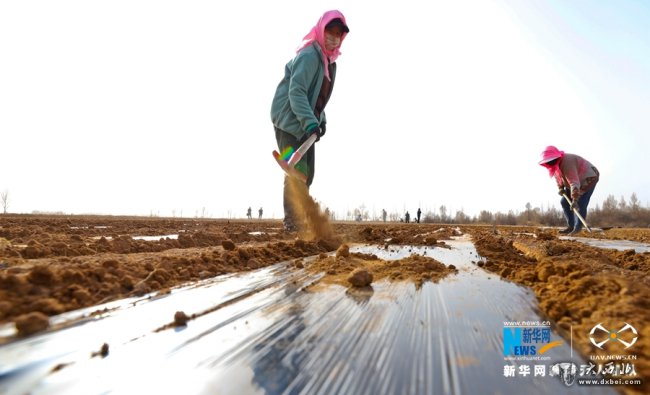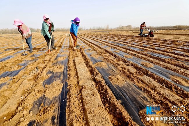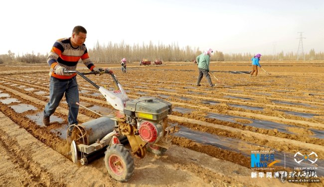早春时节,甘肃省张掖市临泽县制种玉米基地进入覆膜保墒阶段,田间地头一派忙碌的覆膜保墒春耕景象。