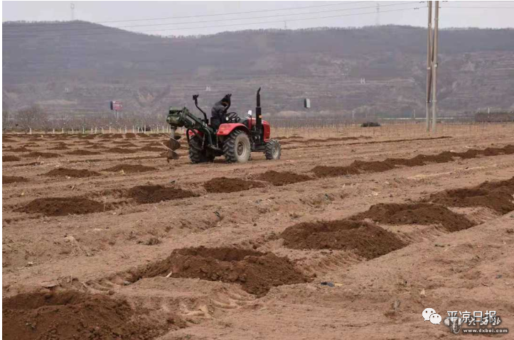 3月17日,静宁县城川镇吴庙村老果园改造示范区红旗招展,果农们“你扶苗、我培土”有序协作栽植矮化密植苹果树,一旁的打孔机来回穿梭翻耕打孔;已经栽好的果树整齐林立,与传统果树相比,今年新栽的间距更宽,整体通透疏朗……一片占地1100亩的现代化果园徐徐铺展,生机勃勃。