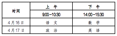 文化考试科目为语文、数学、政治、英语四科,各科试卷满分为150分,总分600分。实行网上评卷,考生须按网上评卷要求进行答卷。