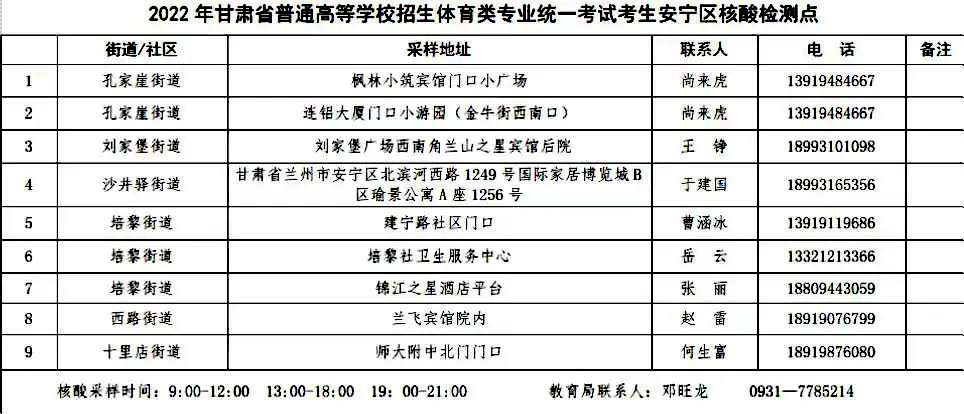 2022年甘肃省普通高校招生体育类专业统一考试考生核酸检测公告