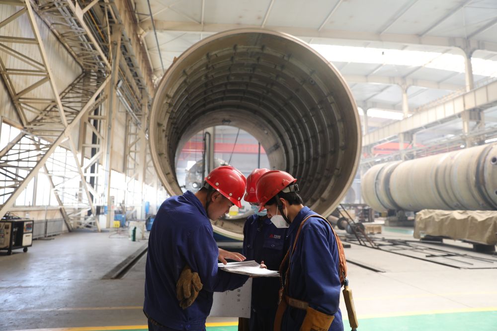 牛克良正在查看焊接作业情况。新华社记者多蕾摄