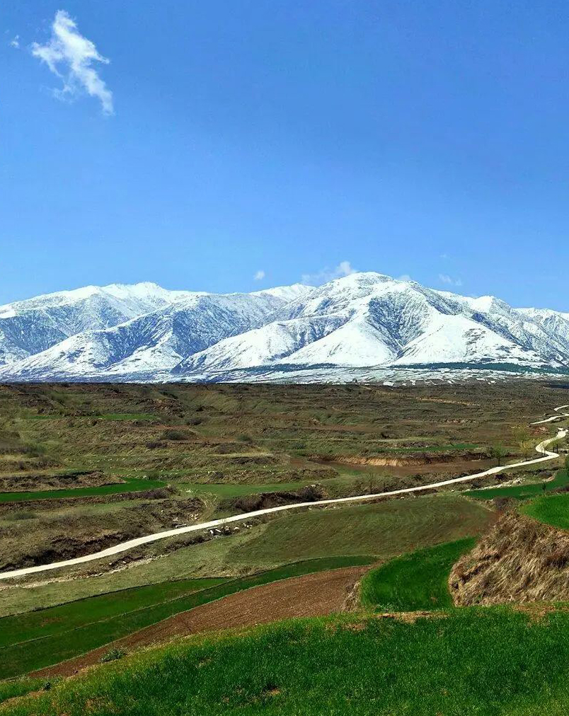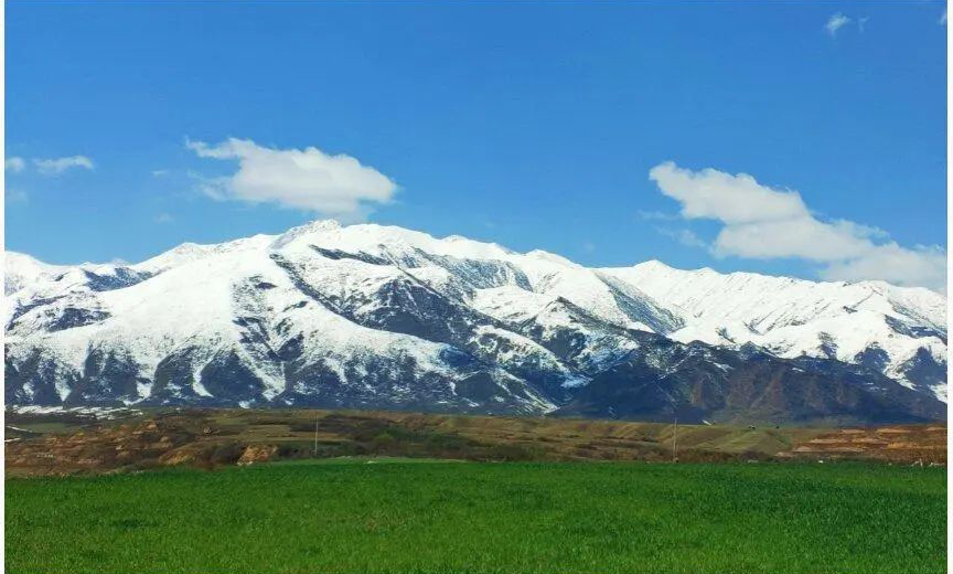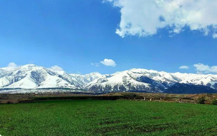 五月的积石山大地像是一幅山水画,山巅白雪皑皑,山下绿意盎然。远远望去,壮美绮丽,令人神往!青山蓝天白雪绿草,美景尽收眼底。  摄影  何延根