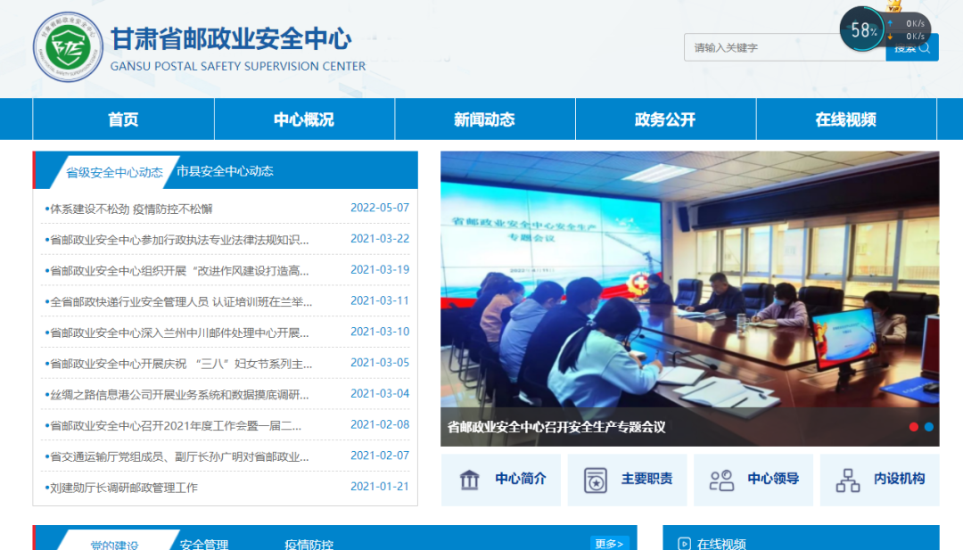 5月7日,全国首个省级邮政业安全中心网站——甘肃省邮政业安全中心网站正式上线试运行,这是基于国家邮政局邮政业安全中心网站群系统扩展建设而成的地方子站,此举是国家邮政局邮政业安全中心加强三级邮政业安全中心系统工作联动的重要举措。