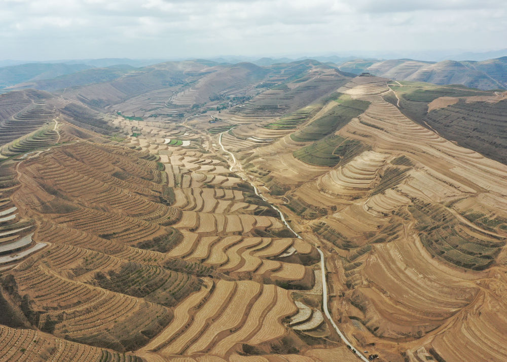 近年来,甘肃省白银市会宁县对中低产山坡地进行“坡改梯”改造提升,在河畔镇建设“旱变水”水肥一体化高标准梯田,项目设计面积达3.2万亩,目前已建设完成二分之一。建成后的高标准梯田宽度达30米以上,建设供水管线10.83km,两级提灌总扬程450米,库容量13万平方米调蓄水池9座,全部配套高效节水田间管网,并建设水肥一体化滴灌设施,有利于土地集约化利用和机械化劳作,提升农田综合生产能力。