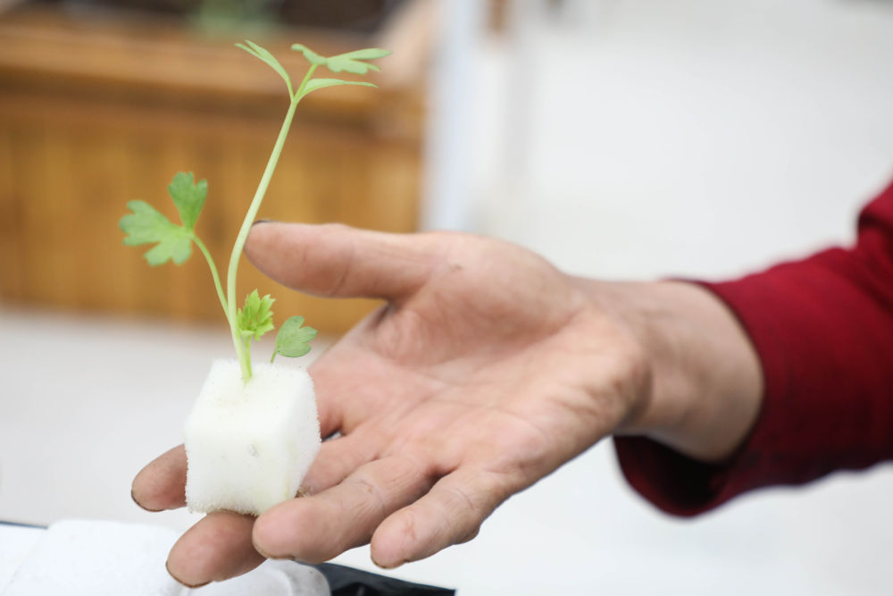 这是5月13日在白银区现代农业科技示范园区拍摄的无土栽培的芹菜。新华社记者马希平摄