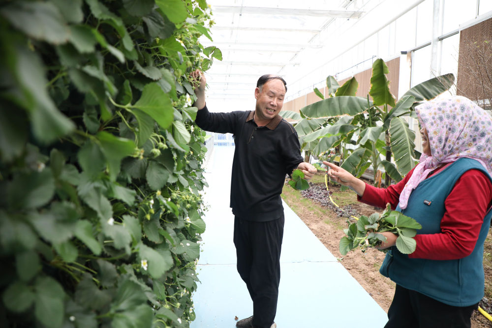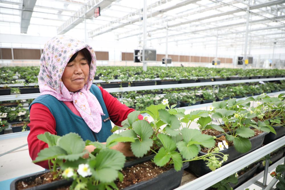 近日,在甘肃省白银市白银区现代农业科技示范园区,利用无土栽培技术培育的草莓、人参果等蔬菜瓜果长势喜人。白银区现代农业科技示范园区主要种植蔬菜和特色林果,大幅节约土地使用面积和劳动力成本,促进农业转型实现增效增收。