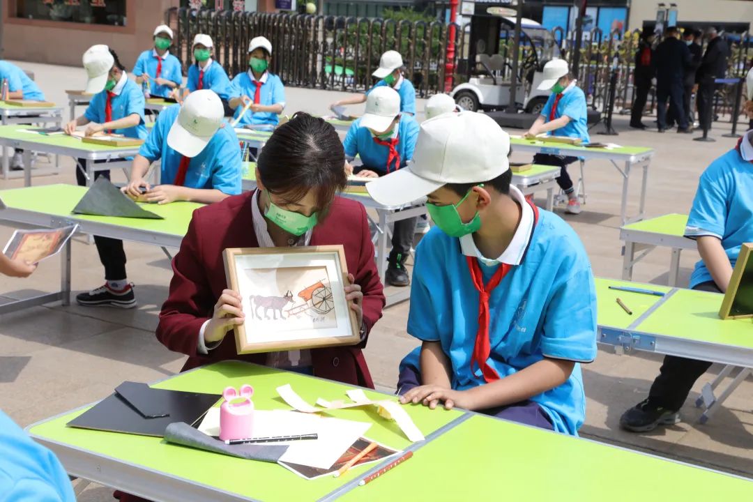 当天活动中,甘肃省博物馆还举办了“百名儿童探索中华文明”少儿社教活动。佩戴红领巾、统一着装的小学生整齐列队,在讲解员的带领下参观了《丝绸之路文明展》,了解魏晋画像砖图案后,在甘肃省博物馆前广场参加了“五凉文化中的地下画廊——百人摹绘画像砖”活动。