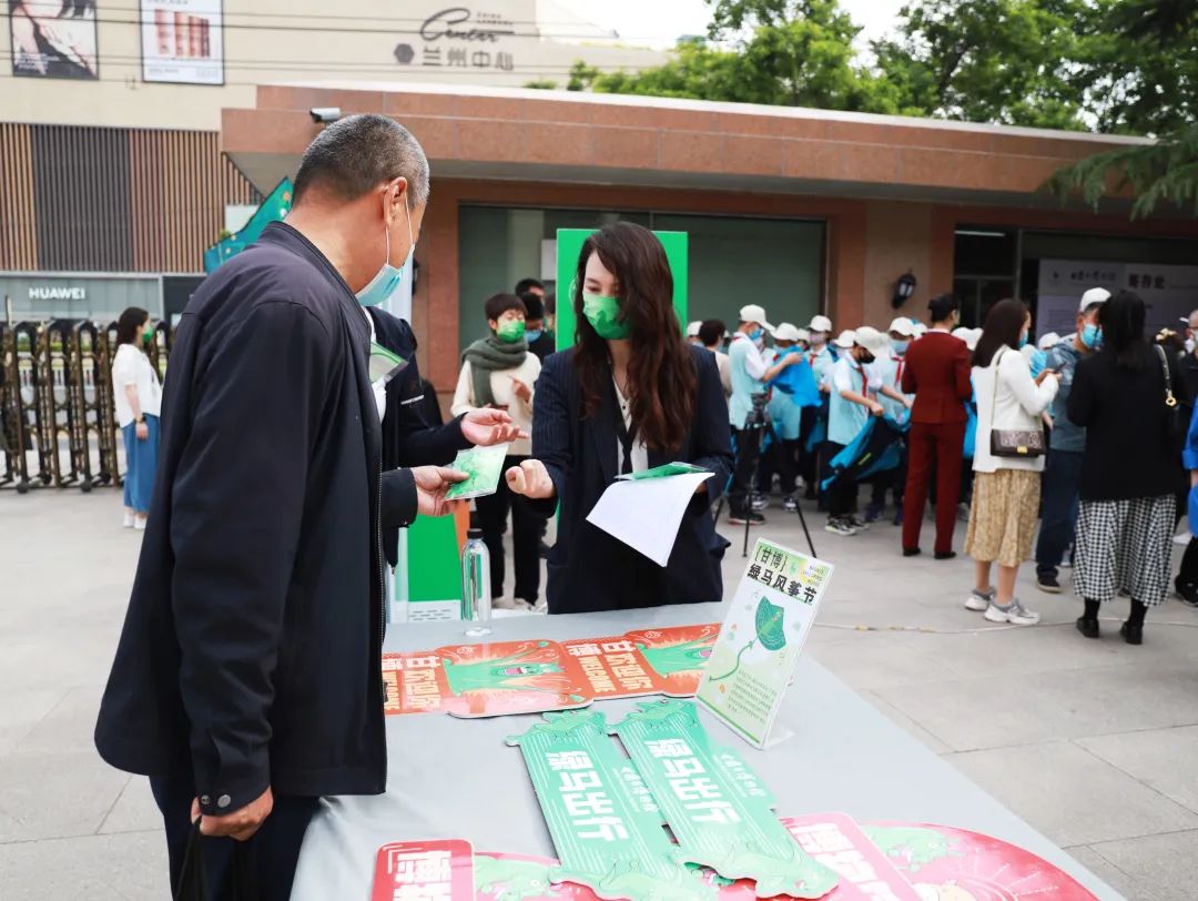 当天上午,甘肃省博物馆为进馆参观的观众赠送了上千个“绿马出行”文创口罩,这款“网红”口罩不仅集文化元素和时尚外形于一体,更是符合医用标准的一次性防护口罩,让人们在现场参加活动的同时,也收到了“绿色祝福”。