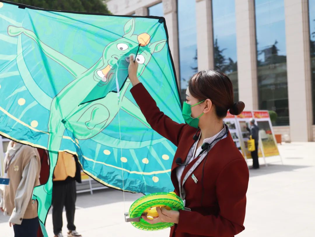 甘肃省博物馆的新品“绿马飞侠”文创风筝也在当天的绿马风筝节活动中首次亮相。“绿马飞侠”文创风筝创意源于甘肃省博物馆国宝文物铜奔马,设计成飞马展翅的原创可爱卡通造型,展现“天马行空”的想象力,趣味十足,过目不忘,且具有“一飞冲天”、“一马当先”的吉祥寓意。活动现场氛围热烈,15位热爱风筝的市民通过报名作为首批试飞员,用放飞“绿马”传递健康美好祝福。