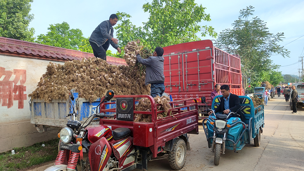 来自天水市武山县的客商周先生说道:“今年已经是我到成县收购大蒜的第4个年头,“店村大蒜”品质好,倍受我们当地农户和消费者青睐。现在我基本上3天就能收满一车约13吨,我们已发往武山四车。看目前的情况,我估计还能收购半月左右。”