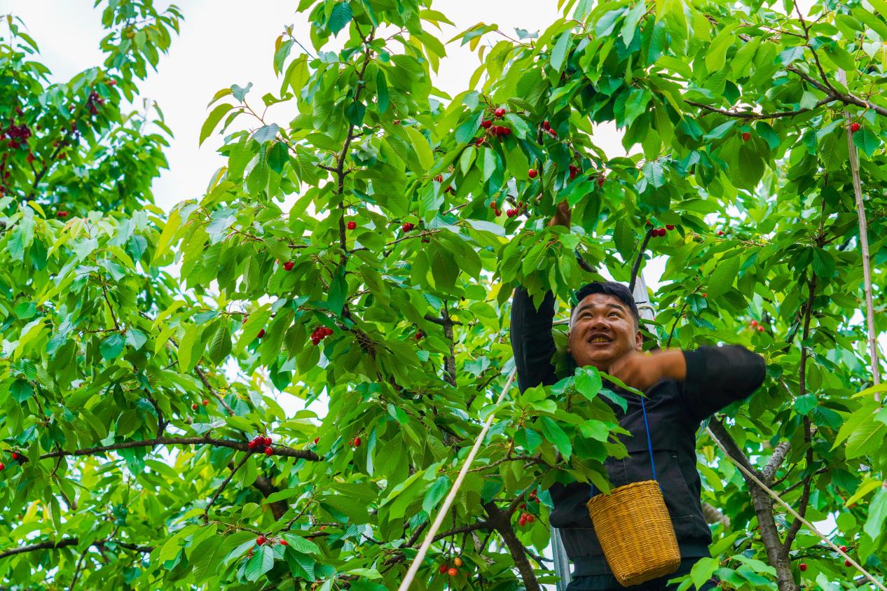 成县小川镇西狭村大樱桃丰收,村民笑开颜。
