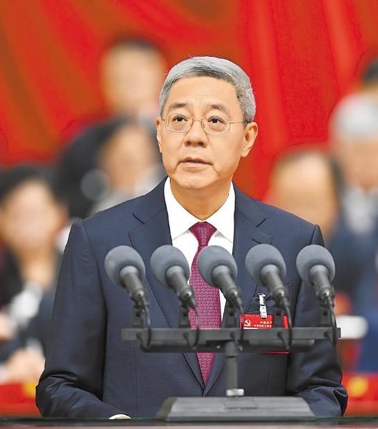尹弘代表中国共产党甘肃省第十三届委员会向大会作报告任振鹤主持