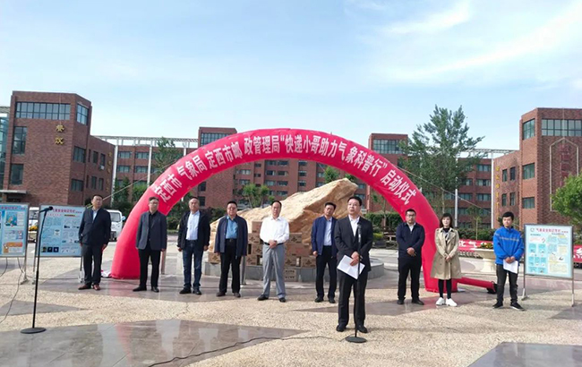 2022年甘肃省‘千乡万村气象科普行’活动在定西市通渭县启动,此次活动通过快递小哥助力气象科普行,气象科普讲座、气象科普知识进校园等多种形式,进一步促进气象科技资源向基层延伸,助力乡村振兴。