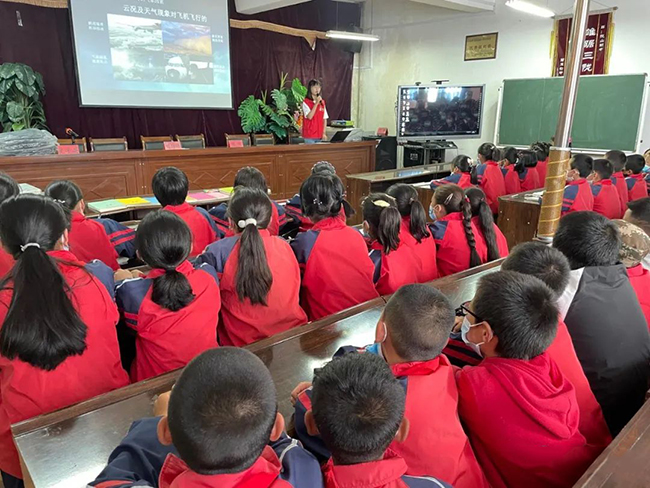 活动中,还举办了气象科普进校园活动,邀请省民航空管局气象台工作人员,结合生活中常见的例子,深入浅出、通俗易懂地讲解了航空与气象知识,为通渭县陇山学校广大师生普及了气象知识和气象防灾减灾知识。讲座还穿插了有奖问答环节,既调动了同学们的积极性,也加深了大家对相关气象知识的印象和兴趣。