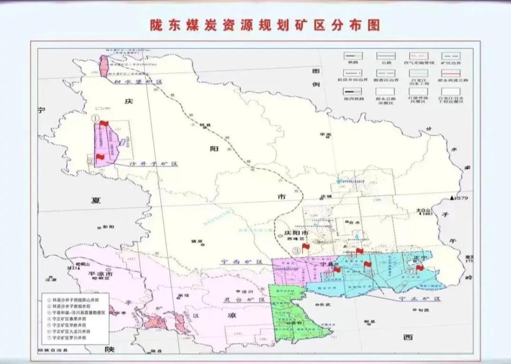 甘肃省宁西矿区后备区位于西峰区、宁县,面积98.38平方千米,资源量8.39亿吨,起始价184562万元;