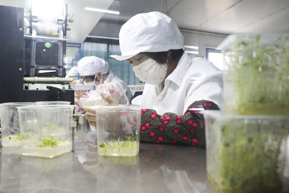 6月9日,在甘肃省定西市农业科学研究院马铃薯脱毒苗快繁中心,工作人员整理已制作完成的马铃薯苗培养基。新华社记者马希平摄
