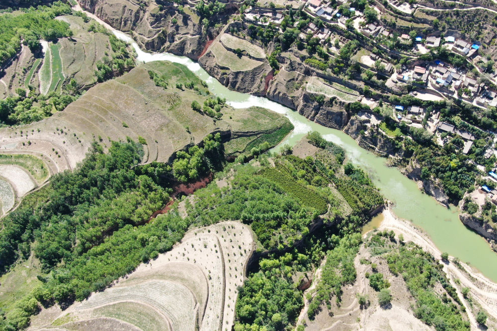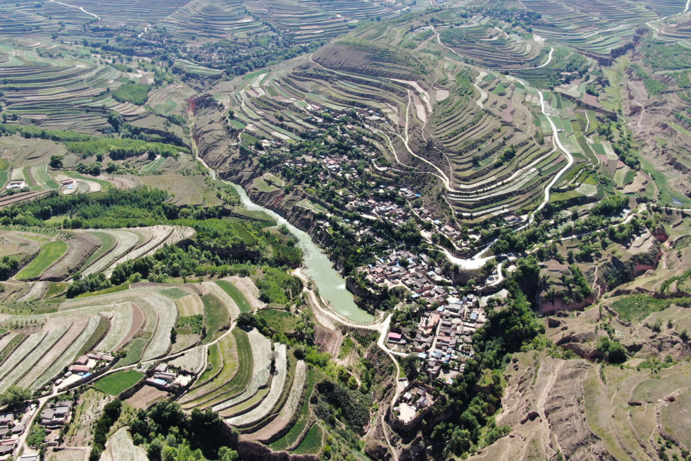 这是6月15日在甘肃省定西市通渭县榜罗镇拍摄的张川村许堡社风景(无人机照片)。(新华社记者马希平摄)