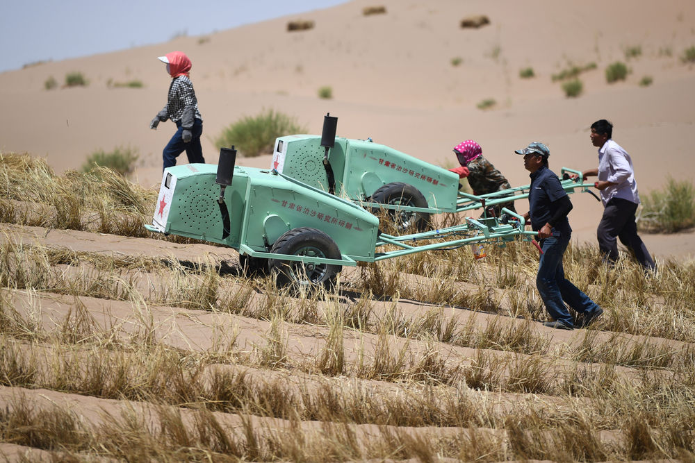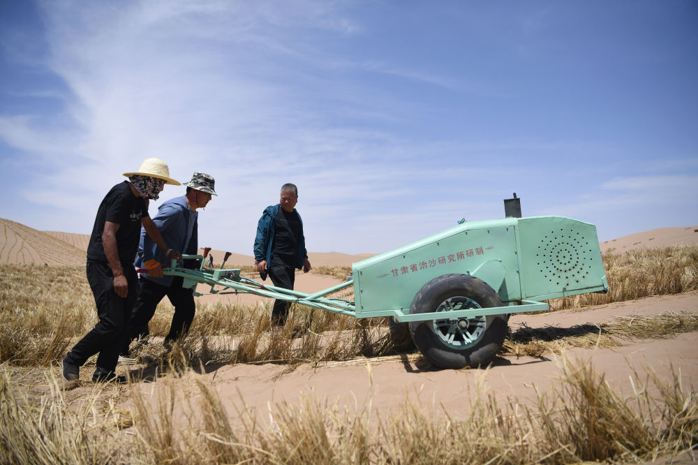甘肃省武威市地处河西走廊东端,北接腾格里沙漠,部分地区曾长期遭受沙害困扰。为加快生态环境恢复和探索固沙治沙新路径,今年以来,甘肃省治沙研究所加大科技治沙力度,将历时四年研发的手扶式沙障机进行改良后大规模用于当地的治沙实践中,以提升固沙治沙的效率和水平。