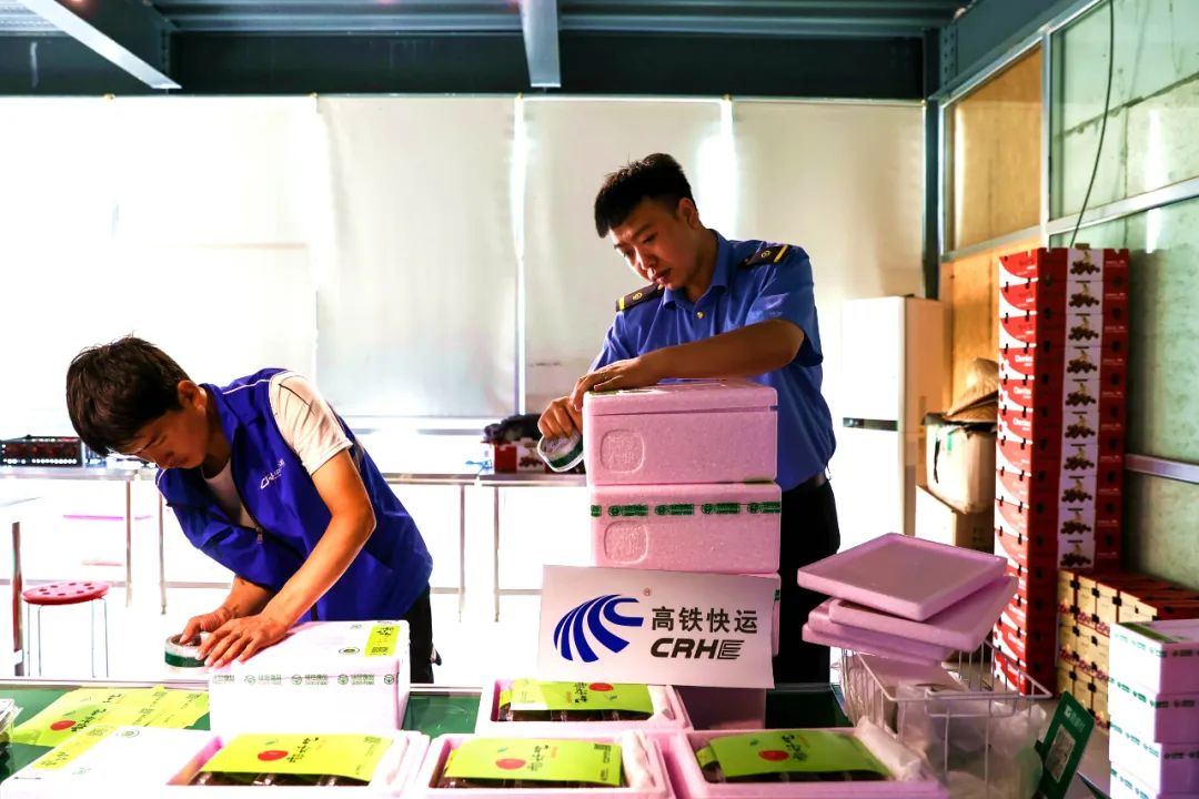 银西高铁助力当地生鲜瓜果扩大外销。高铁快运“当日达”业务解决了果农担忧的运费、时效和保鲜三大难题。