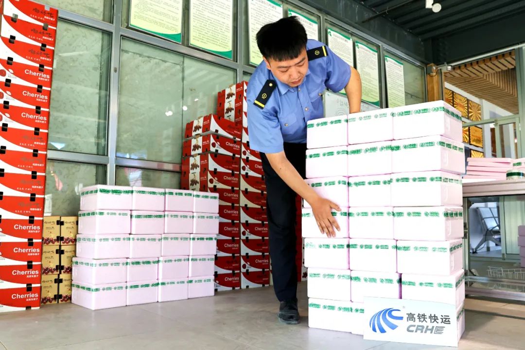 成箱成件的樱桃,乘坐高铁奔向各地。