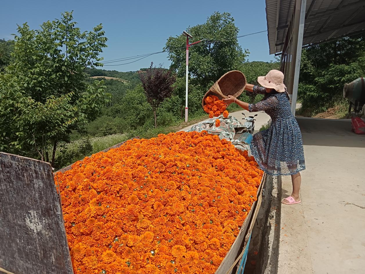 “今年,我们把万寿菊产业作为助农增收的主导产业,提早谋划,积极协调县农业农村局、育苗企业、收购企业、农业保险等产业链相关单位和企业,从花苗培育供应、肥料保证、技术指导、采摘、收购、农业保险等每个环节提供保障服务,解决了种植户的实际困难和思想顾虑,保证了万寿菊特殊产业的提质增效。”鸡峰镇党委副书记高红说。