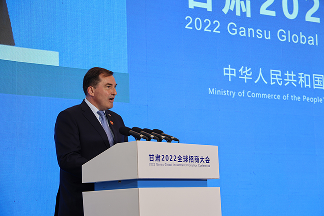 大西北网讯  2022年7月7日下午,甘肃2022全球招商大会在兰州成功举办。大会以“融入世界发展新格局•推动甘肃高水平开放”为主题,连线在德国、西班牙、泰国、香港设立的四个分会场,面向全球展现甘肃的魅力、动力、活力和创新力,诚邀国内外企业和企业家、投资人来甘肃投资兴业,共享发展机遇,共创美好未来。省委常委、副省长张锦刚出席并致辞,乌拉圭、白俄罗斯驻华大使,中国-东盟中心秘书长分别致词。