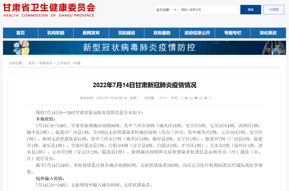 现将7月14日0—24时甘肃省新冠肺炎疫情信息公布如下: