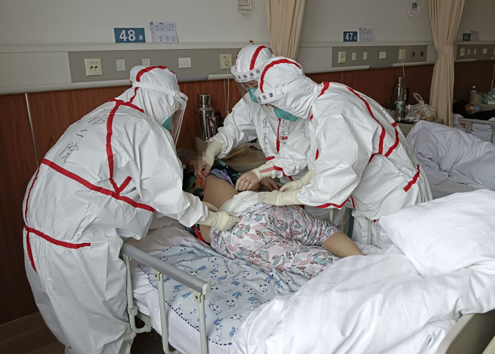 甘肃省本次疫情中,在兰州市的新冠肺炎疫情定点救治医院兰州市第二人民医院雁滩分院(兰州重离子医院),医务人员在工作中。(兰州市第二人民医院供图)
