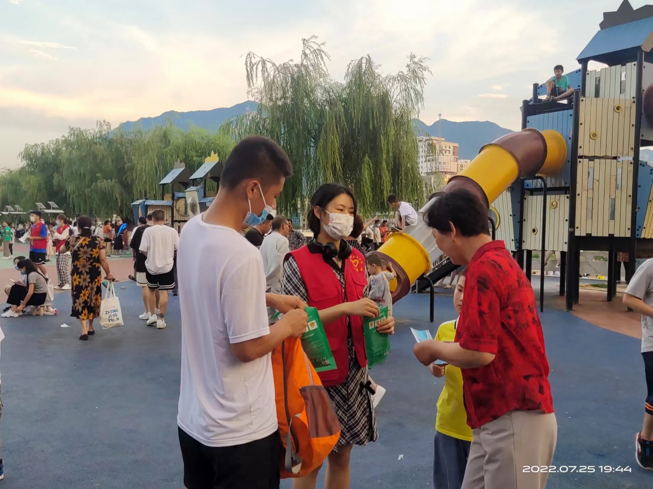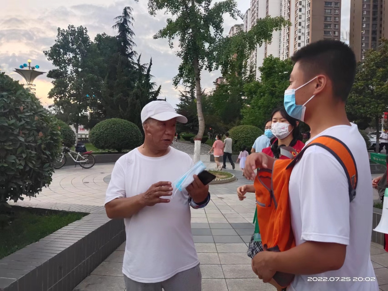7月25日晚开始,团团志愿者们走上街头为群众免费发放口罩劝导行人不扎堆、保持安全距离。