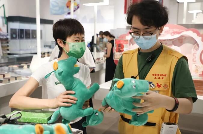 在甘肃省博物馆文创商店,游客挑选玩偶。马希平摄