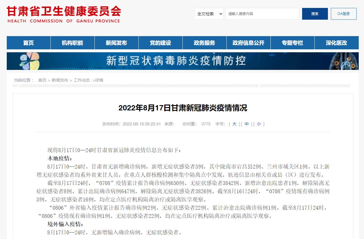 现将8月17日0—24时甘肃省新冠肺炎疫情信息公布如下: