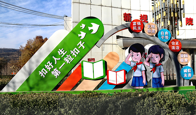 在城区主次干道、公园广场、社区楼院、建筑工地等公共场所布设讲文明、树新风公益广告和社会主义核心价值观景观小品,打造文明有礼、家教家风、道德模范、诚实守信主题示范街21条,在提升环境品位的同时,让群众“抬头可见、驻足可观”,在潜移默化中统一思想、凝聚合力,广大党员干部及市民群众主动请缨,积极参与创建活动,创城已成为全体市民的自觉行动和自愿追求。