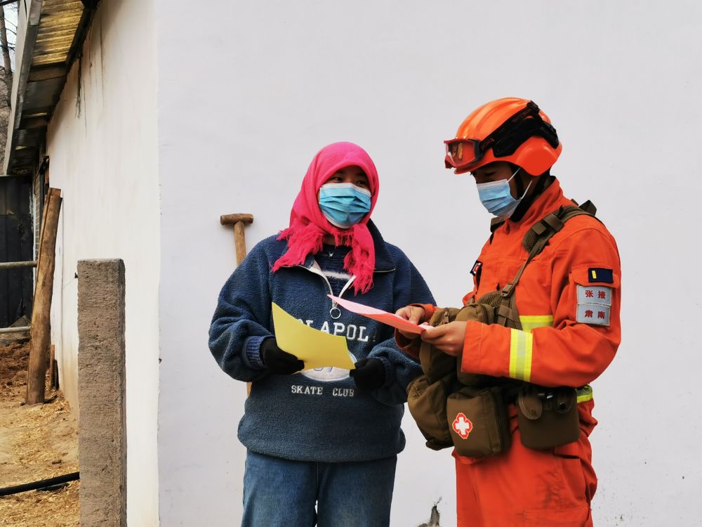 1月11日,森林消防员在肃南裕固族自治县西柳沟村向农牧民发放防火宣传单。新华社记者张新新摄