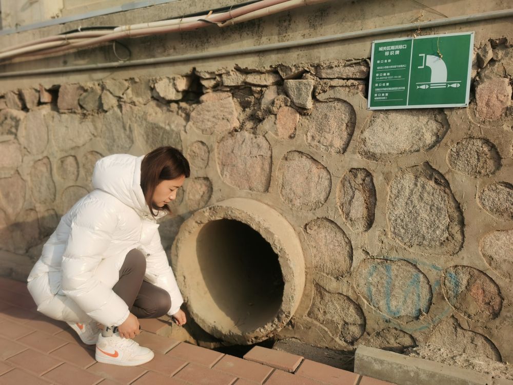 1月18日,杨瑷祯在检查黄河边的雨洪排口。(新华社记者崔翰超摄)