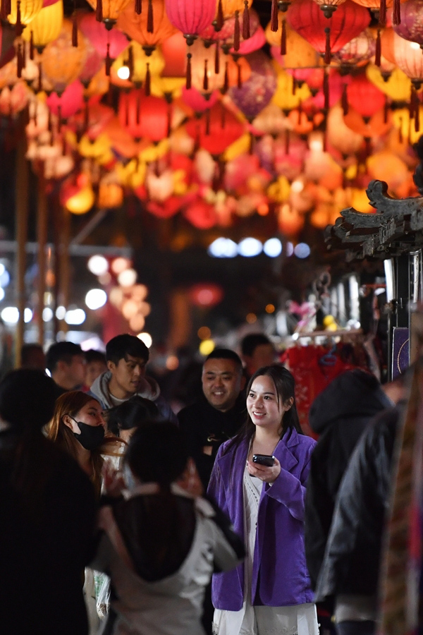 3月16日,游客在敦煌夜市游览。新华社记者陈斌摄
