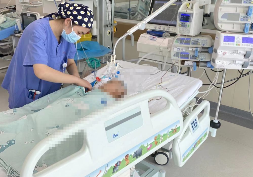 王卫凯介绍,体外膜肺氧合(ECMO)技术要求比较高,在这么小的孩子身上实施更是格外困难。“这些天来,我们的医护人员24小时值守,一刻不离地守在孩子床边。”