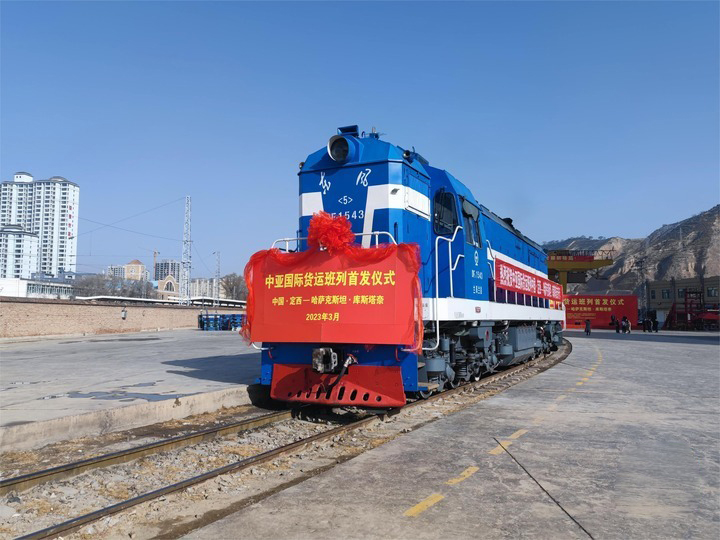 2023年3月25日,甘肃省定西市首列中亚国际货运班列(定西-库斯塔奈)即将出发。新华社记者崔嘉琪摄