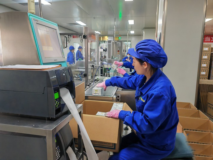 2023年4月26日,甘肃陇神戎发药业股份有限公司工作人员正将打包好的药品码放装箱。新华每日电讯记者李杰摄