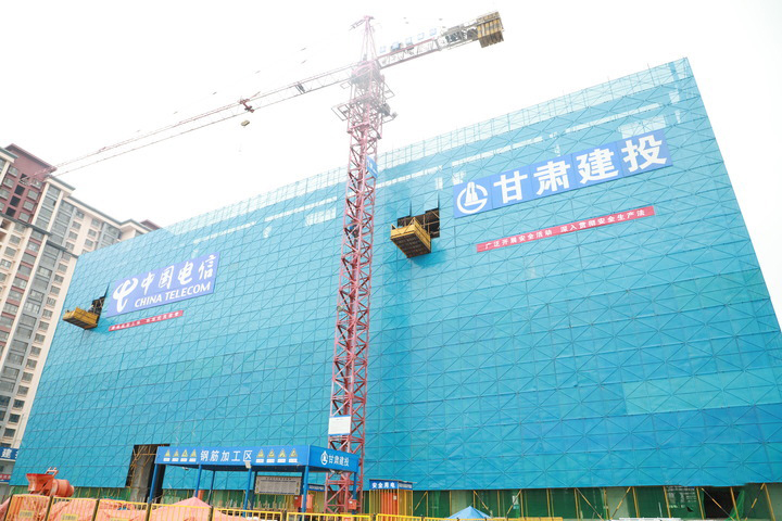 2023年2月21日,中国电信甘肃公司庆阳大数据中心封顶。新华社记者梁军摄