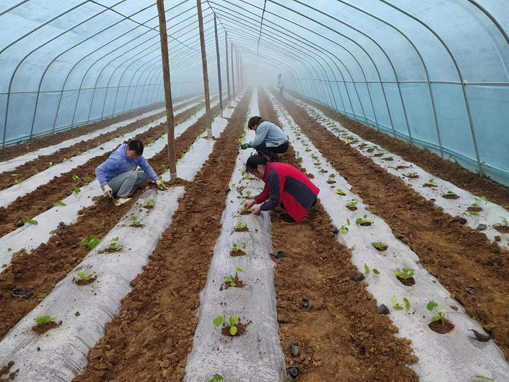 群众在家庭农场内精心管护蔬菜幼苗  张腾  摄
