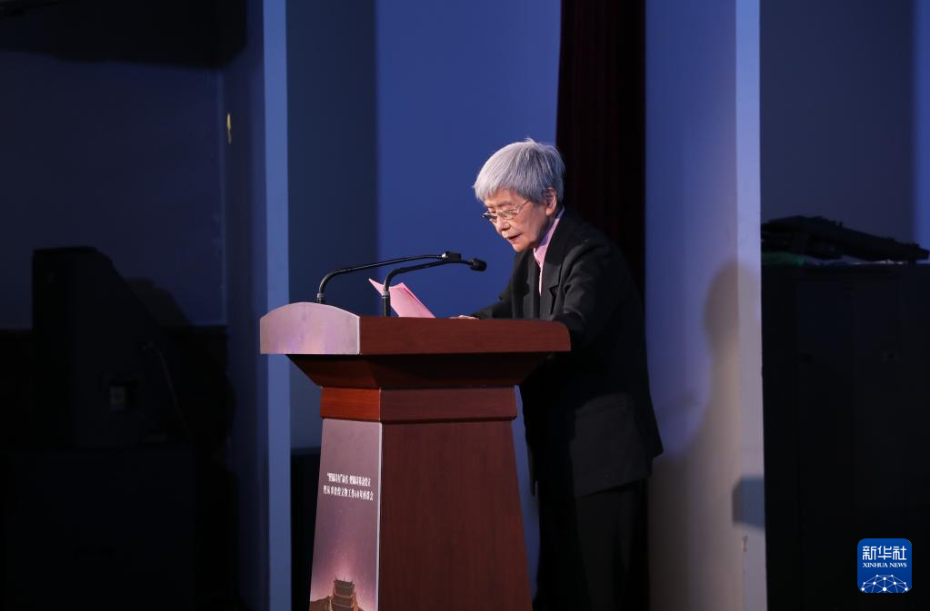7月10日,敦煌研究院名誉院长樊锦诗在会议上发言。新华社记者张睿摄