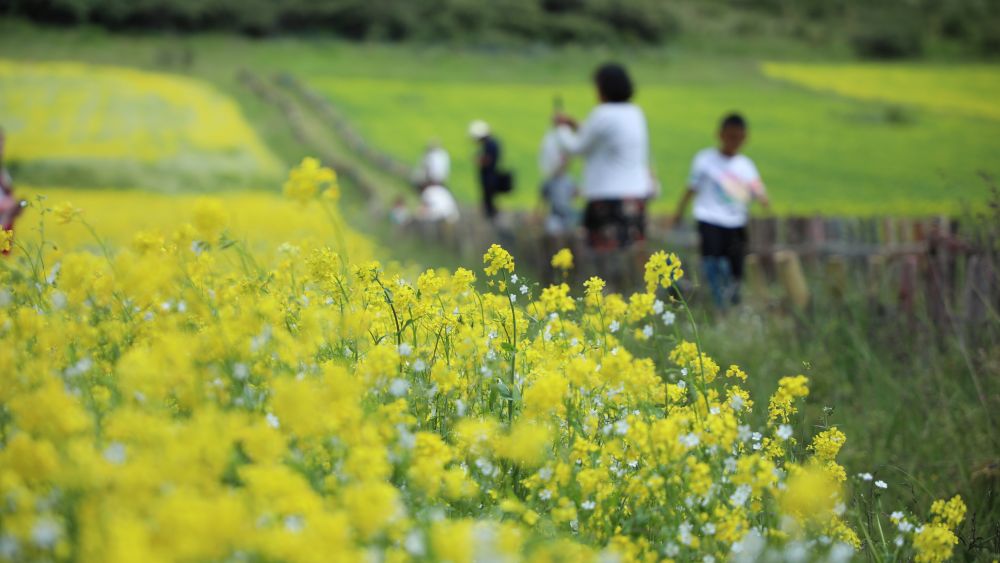 7月16日,游客在古浪县南部山区观赏游玩。新华社记者张睿摄
