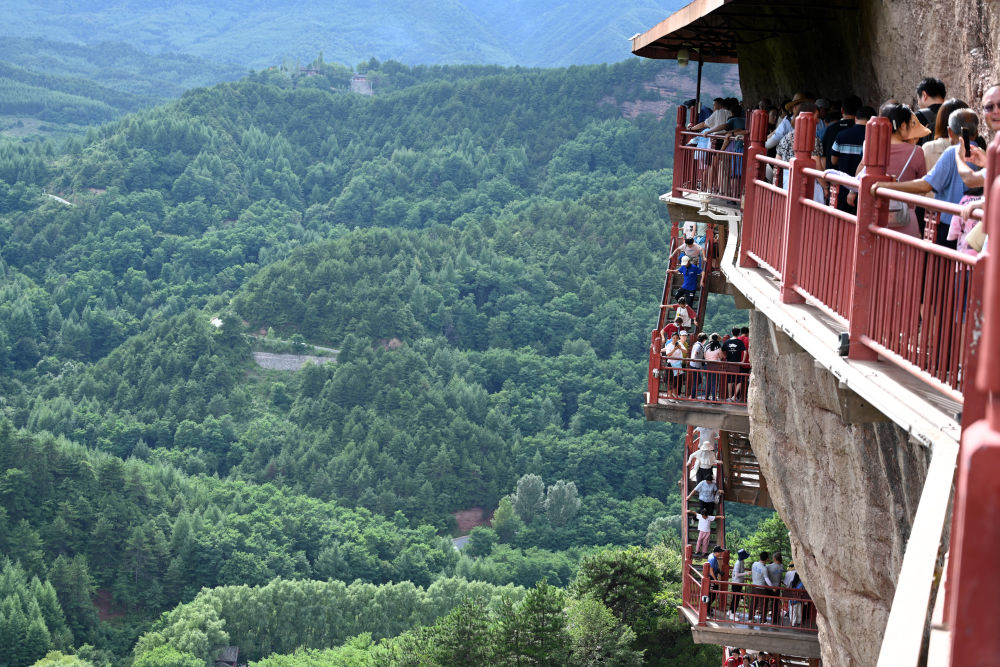 7月29日,游客在麦积山石窟参观游览。新华社记者范培珅摄